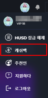 사용자 프로필에서 캐시백을 확장하고 클릭합니다.