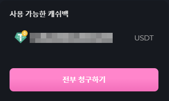 사용 가능한 캐시백 금액을 확인하고 모두 청구를 클릭하여 캐시백을 청구할 수 있습니다.