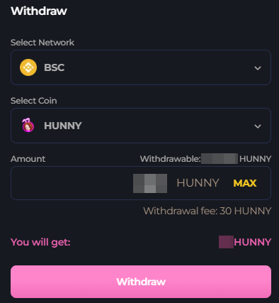 Please refer to the Withdrawal Fees [here](https://docs.hunny.finance/products/hunnyplay/..#withdrawal-fees).